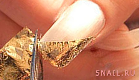 - резко оторвите лист, у вас останется тонкая прозрачная пленка в руках, а фольга на ногте;