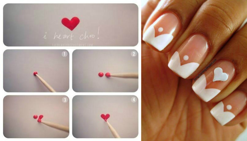 Рисунки сердечек на ногтях: 70 идей + уроки