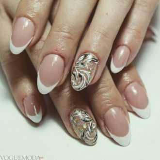 Миндальный нежный маникюр красиво смотрится в следующих техниках оформления: