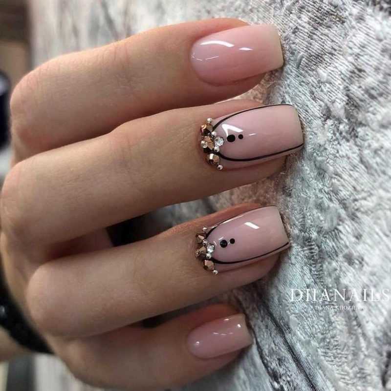 Нюдовые оттенки — классика маникюра. Если нужно уравновесить слишком интенсивный декор, выбирайте нюдовую базу. Другой вариант — спокойный нюдовый летний маникюр для офисных будней, который к выходным можно разнообразить интересным ярким дизайном.