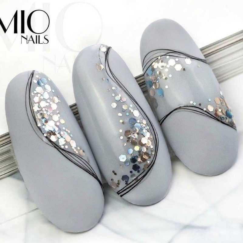 В таком варианте маникюра для закрепления рисунка уместно использовать матовый топ.