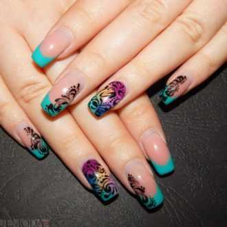 Этот стиль давно завоевал статус трендового. Он по-своему универсальный, смотрится изысканно и утонченно, визуально хорошо удлиняет пальцы и делает руки более нежными. И разноцветный френч тоже будет выглядеть благородно, но при этом броско.