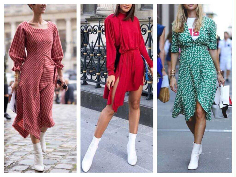 Ботильоны — женственная обувь для межсезонья, которая, как правило, бывает на высоком каблуке. Поэтому с платьями ботильоны сочетаются отлично.