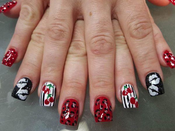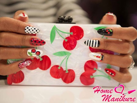 Существует множество интересных идей маникюра, которые могут разнообразить принт с вишенками.