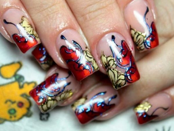 Этот тип украшения ногтей позволяет исполнителю выразить любое настроение или воплотить самые смелые идеи. Можно тонкой кисточкой нанести любой узор золотым или контрастным лаком. Довольно серьезный и в то же время нарядный вишневый маникюр получается с изюминкой.