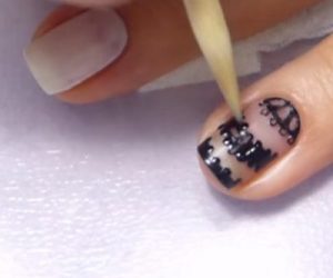 Дизайн выполняется довольно просто. На однотонное покрытие с помощью кисти наносятся тонкие линии и изгибы, сравнимые с кружевной вышивкой. Также можно использовать технику литье, которая выполняется с помощью специальной фольги. Лучшим выбором станет золотой цвет. Маникюр создается довольно просто и не займет много времени.