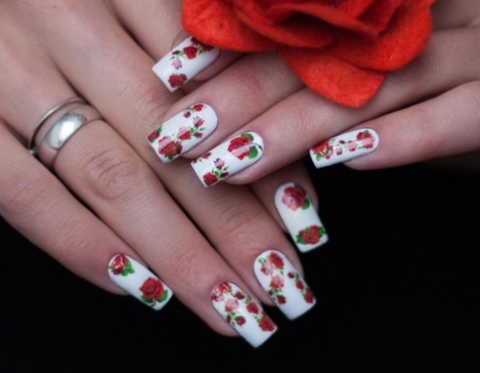 Цветочные мотивы на ногтях будут красиво смотреться и с френчем, и с лунным маникюром. Ведь цветочные слайдеры бывают яркие, спокойные, фееричные и насыщенные. Попробуйте дополнить цветами красный, синий, желтый, изумрудный, фиолетовый, салатовый нейл-арт. Особой изысканностью обладают слайдеры для свадебного дизайна. Они настолько нежные, что похожи на фату невесты. Такой праздничный маникюр с цветочными наклейками в белых тонах украшают различными бусинками, стразами, блестками. Иногда свадебный нейл-арт подбирают не в тон платья, а под цвет букета невесты. Такие ноготки с цветочными слайдерами будут неповторимыми!