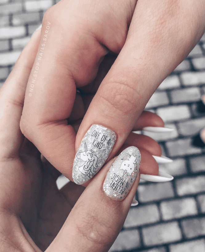 Невероятно популярны слайдеры с леттерингом и нанесение слайдеров на подложку в виде фольги, блесток, крупного глиттера и градиента.