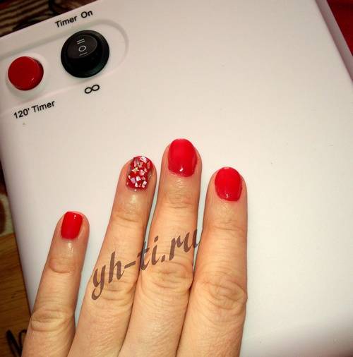 - красному лаку хорошо подходят полоски, выполненные в золотом, янтарном, оранжевом цветах;