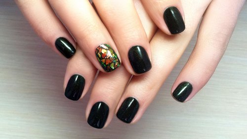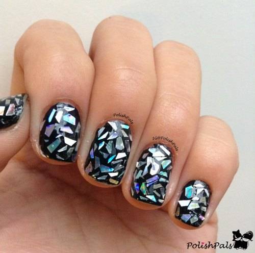 - совмещение черного покрытия и синей слюды, можно взять цвет электрик, сирень или изумрудный глиттер;