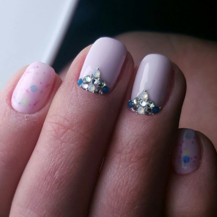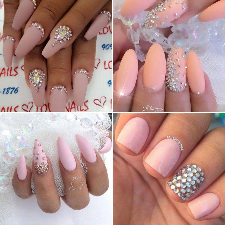 Первые две разновидности больше подходят при создании розового маникюра со стразами. Каким бы ни был выбор, главное, чтобы украшений было в меру.