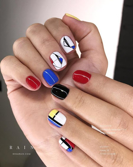 Геометрический маникюр абсолютно неподвластен времени, существует множество вариантов дизайна, вы можете попробовать цвета и блеск — все, что вам приходит в голову. Преимуществом геометрического нейл-арта является его способность дополнять разные дизайны и создавать с использованием разных техник и способов выполнения нейл-арта.