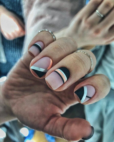 Маникюр геометрия — это создание различных геометрических фигур с помощью линий, штрихов, зигзагов и точек, которые можно размещать в любом порядке и вариациях. Стильный геометрический нейл-арт прекрасен в направлениях «колор блок», омбре, лунный нейл-арт, минимализм, битое стекло, оригами. Маникюр геометрия 2021 будет великолепно смотреться как на длинных, так и на коротких ногтях, разных форм.