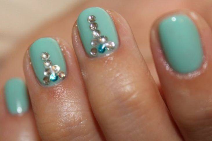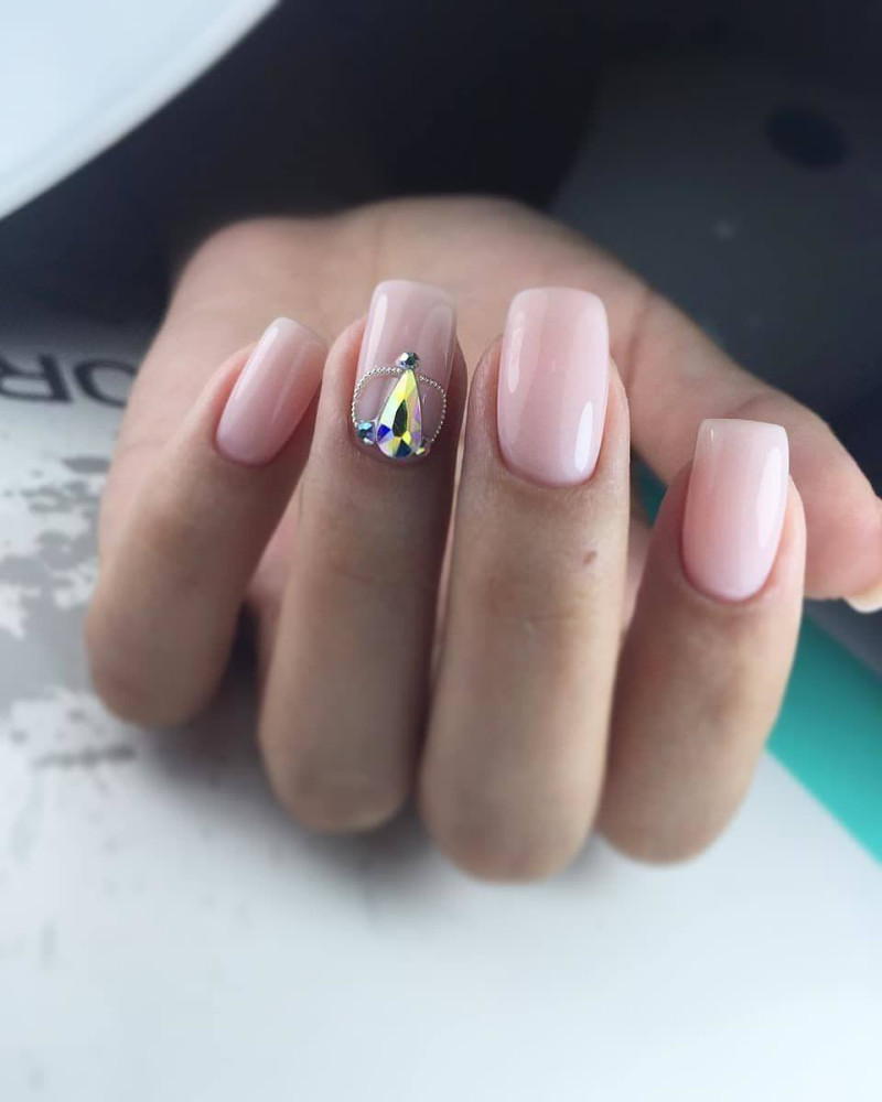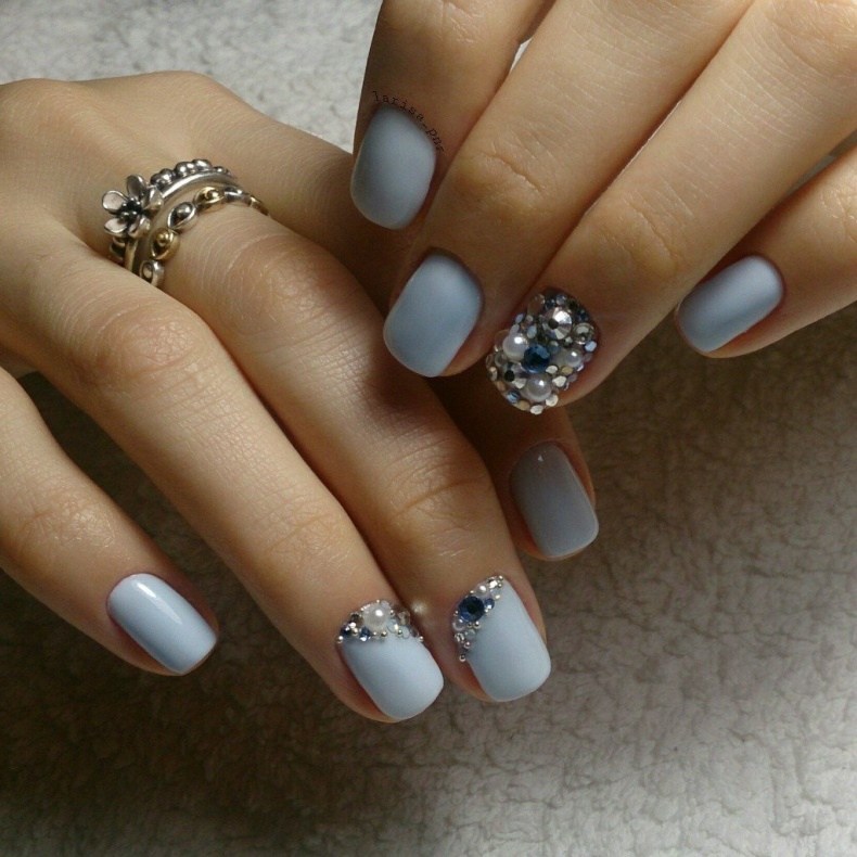 Особенно востребован последний вариант, способный переливаться разнообразными цветами, тем самым отлично подходящий для создания маникюра со стразами на коротких ногтях.