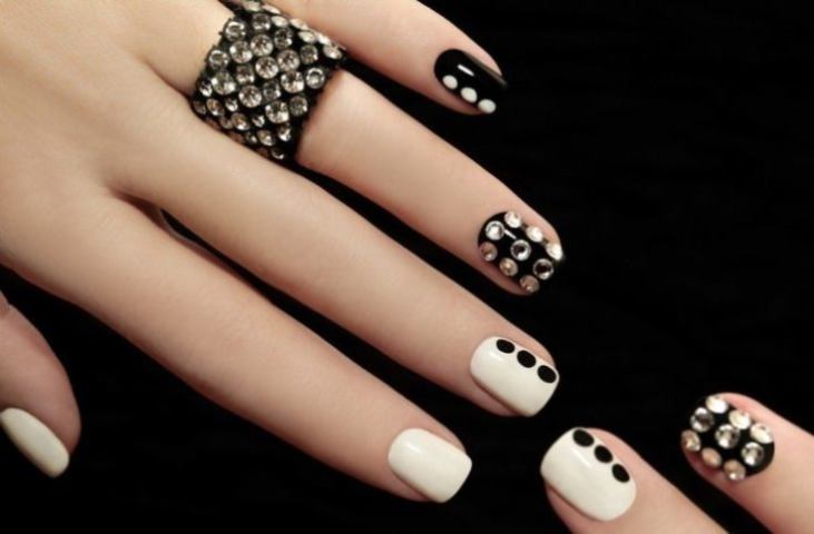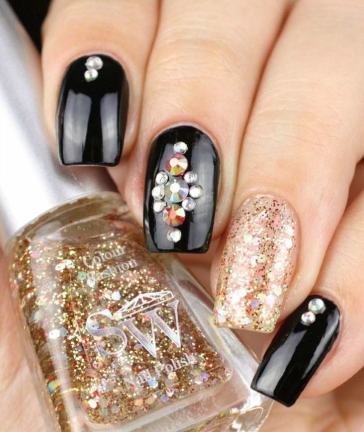 Однако помимо вышеперечисленных не исключено создание черного маникюра со стразами. Особая элегантность может быть достигнута посредством использования страз.