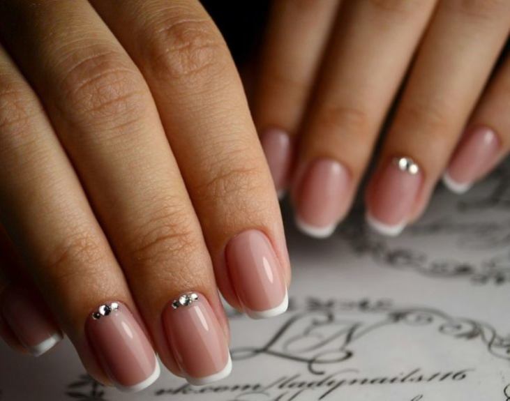 Стразы и другие украшения считаются лишь дополнительным элементом повседневного нейл-арта, однако их использование преображает даже самый незатейливый дизайн. Французский маникюр – фаворит женских предпочтений, все чаще модницы даже для повседневного ношения украшают его стразами небольшого размера. Ими выделяется чаще прикорневая лунка или боковина ногтя. Если использовать такой декор на крае ногтя, то он быстро испортиться да и просто будет мешаться.
