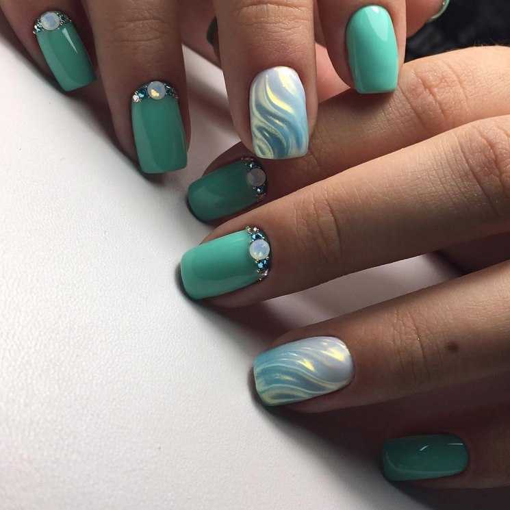 Без мятного маникюра весенне-летний сезон просто нельзя вообразить. Но его можно сделать и в другой время года — смотреться будет не менее круто. В теплую пору года можно добавить стильные рисунки в виде силуэтов лиц или абстрактные мотивы. Зимой актуален «вязаный» маникюр и сезонные тематические иллюстрации в виде медведей, варежек или снежинок.