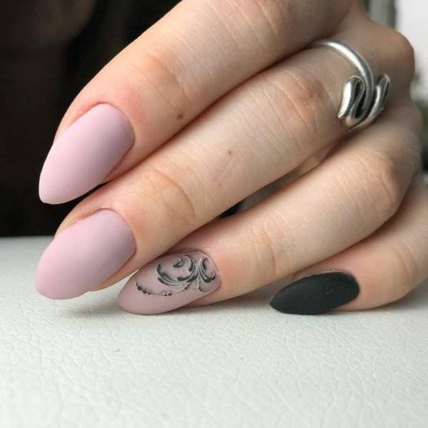 Важно! Сегодня особой популярностью пользуется монохромный дизайн маникюра, в котором чередуется матовое и глянцевое топовое покрытие, образуя на поверхности ногтя оригинальные витиеватые узоры. Загрузка …