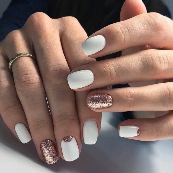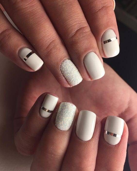 Белоснежный дизайн. Деловой маникюр, выполненный в белоснежной палитре — это буквально тренд летнего сезона. Ведь несмотря на свою простоту, такое оформление всегда смотрится аккуратно, стильно и нарядно. Дополнить его можно несколькими стразами или же тонкой полоской из фольги.