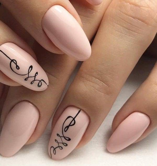 Маникюр с черным лаком и с дизайном. Дизайн может быть любой. Это могут быть узоры, вензеля, различные завитушки.