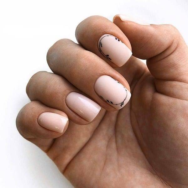 - Аккуратная и едва заметная роспись ногтей с мини-элементами. Рекомендуется выполнять одноцветный рисунок на нюдовой основе;