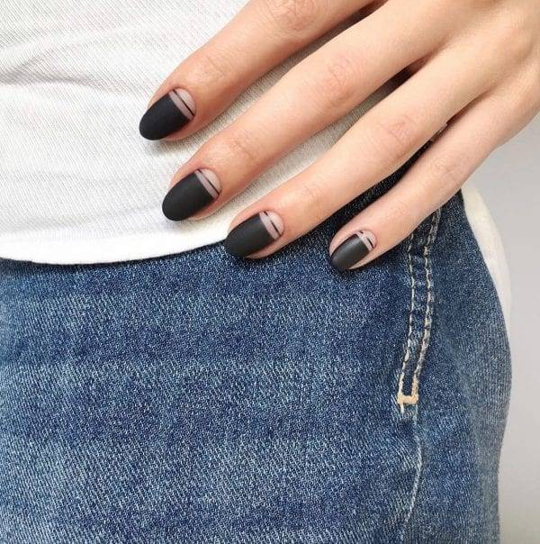 - Маникюр черные ногти с негативным пространством;