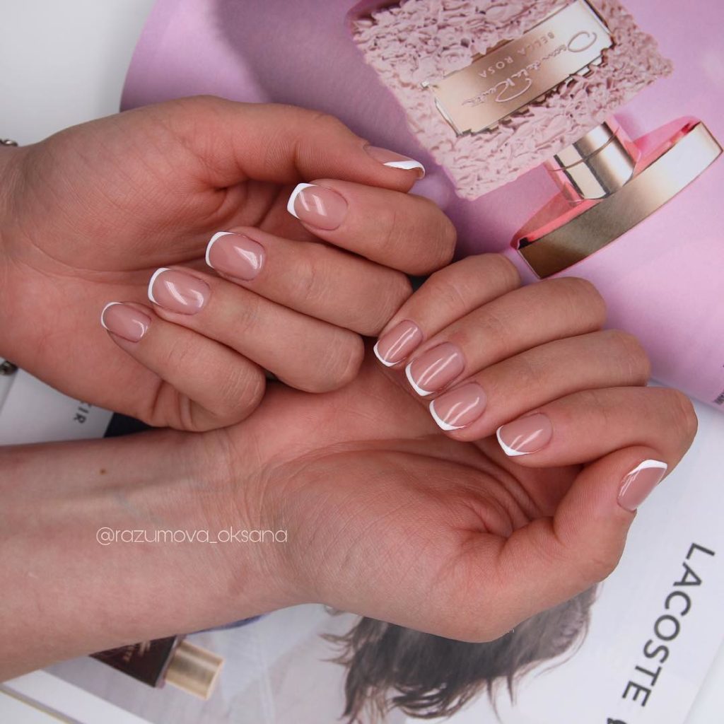 - классический френч в розово-белом или бежево-белом сочетании;