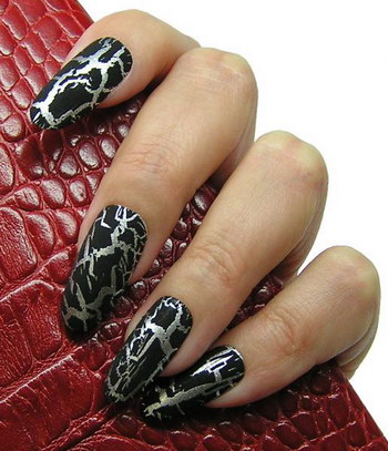 12. Crackle — лак для ногтей с эффектом старины. При засыхании образует трещины. Чем больше лака вы нанесете, тем больше трещинок получится. Кракелюр используется для ногтей, которые покрыты цветным лаком, сам по себе он не впечатляет. Перед нанесением этого лака необходимо тщательно встряхнуть флакончик. Без верхнего покрытия такой лак не обойдется, ведь он плохо держится на ногтях.