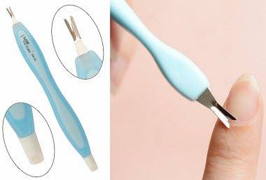 Лопаточка – данный маникюрный инструмент помогает отодвинуть кутикулу перед ее срезанием. Следует отметить, что в настоящее время можно приобрести триммер для кутикулы, который на одном конце имеет острие для обрезания внутренней поверхности ногтя, а на другом конце палочку для ее отодвигания. Такой инструмент очень удобен, так как он с легкостью выполняет сразу две задачи. Да и маникюрный инструмент для удаления подобных нюансов стоит гораздо меньше, чем триммер и лопатка по отдельности.