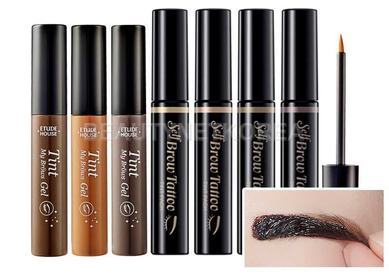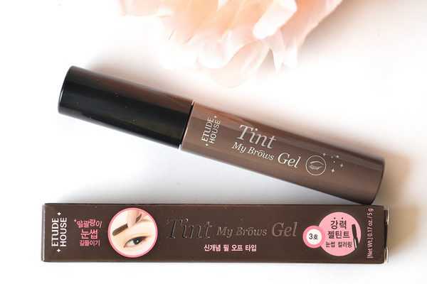 - Etude House: имеет гелевую форму, состоит из натуральных компонентов, имеющих растительную основу. Такой состав позволяет провести качественное окрашивание, без оказания негативного воздействия на структуру волосков. Палитра представлена тремя тонами, комплект содержит кисть, что облегчает процесс нанесения и распределения средства по поверхности надбровных дуг. Дополнительная фиксация здесь не требуется. Эффект, достигаемый после воздействия, немного напоминает татуаж.