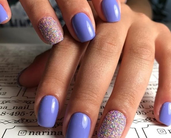 - На все пальцы наносите меланж, а один оставьте глянцевым.