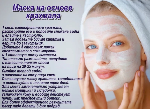 Маска с крахмалом, сделанная вместо ботокса, обладает следующими положительным качествами: