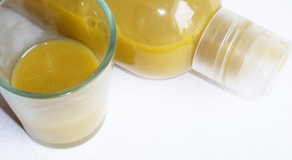 - процедить полученную смесь. В жидкость добавить мед и два масла;