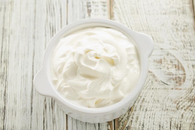 Сметанно-йогуртовая. Смешиваем ингредиенты в равных пропорциях, размазываем расческой. Оставшуюся часть втираем в кожу у корней. Держать маску следует не менее часа. Йогурт берется несладкий, без добавок и ароматизаторов.
