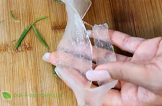 - После этого из листьев отжать сок через марлю (бинт) или перетереть их в кашицу, предварительно срезав колючки.