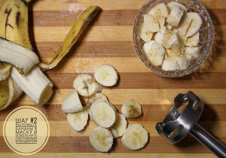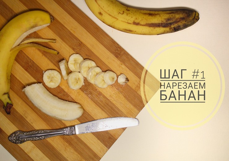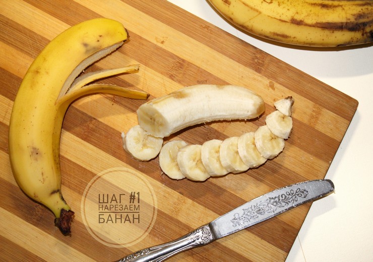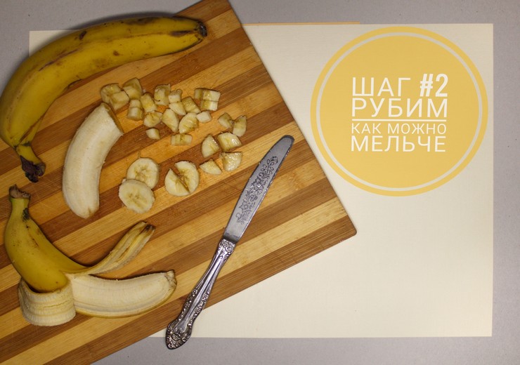 Шаг #2 Как можно мельче порубите нарезанный банан, до образования мелких кусочков.