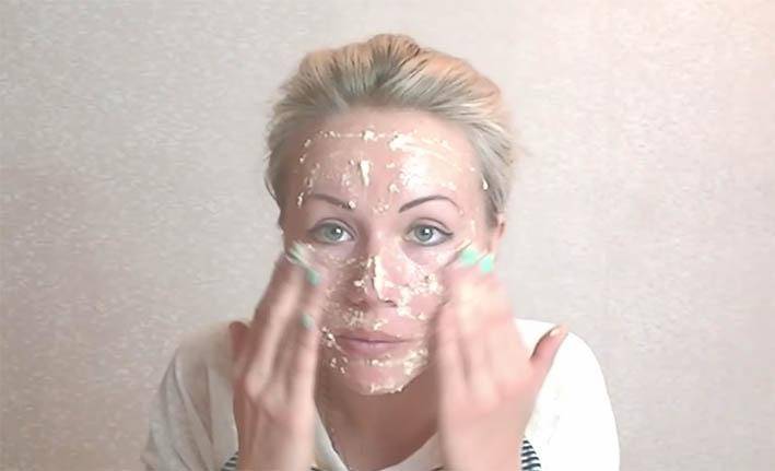 Для получения маски нужно меньше воды, чем для скраба. Средство по консистенции должно быть густым, для того чтобы оно не стекало с лица. Время процедуры составляет 10 минут.