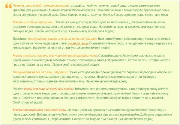 Рецепты различных масок с содой
