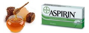 Ингредиенты: аспирин (4 таблетки); лимонный сок (16 мл.); мед (36 гр.); растворы на спирту календулы и ромашки (по 15 капель).