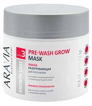Первое место в нашем рейтинге достается разогревающей маске Pre-Wash Grow Mask бренда ARAVIA Professional для роста волос.