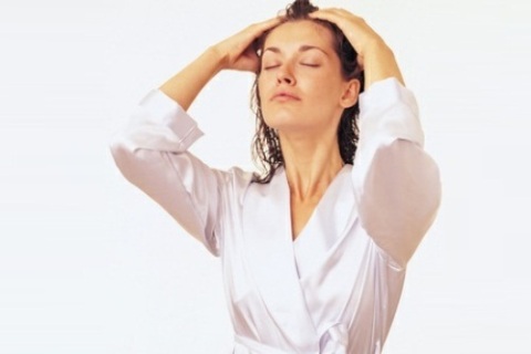 - Перед тем, как втирать средство в корни волос, необходимо вымыть и высушить шевелюру. Обязательно наденьте на голову целлофановый кулёк.