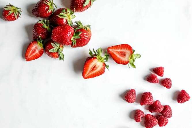 - ягодная. Раздавите несколько ягод малины, клубники, чёрной или красной смородины, земляники. Возьмите 2 ст. л. ягодной массы, соедините с 1 ст. л. домашнего творога;