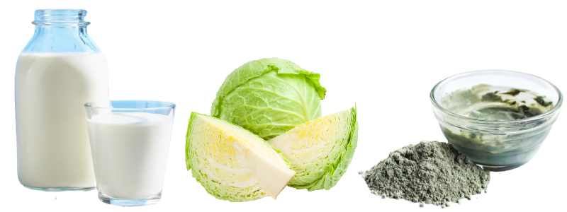 Изготовление этой маски из глины для лица начинается с подготовки капустного листа. Его нужно поместить в глубокую тарелку и залить подогретым молоком. Это необходимо для того, чтобы лист капусты размягчился и разбух для облегчения его измельчения.