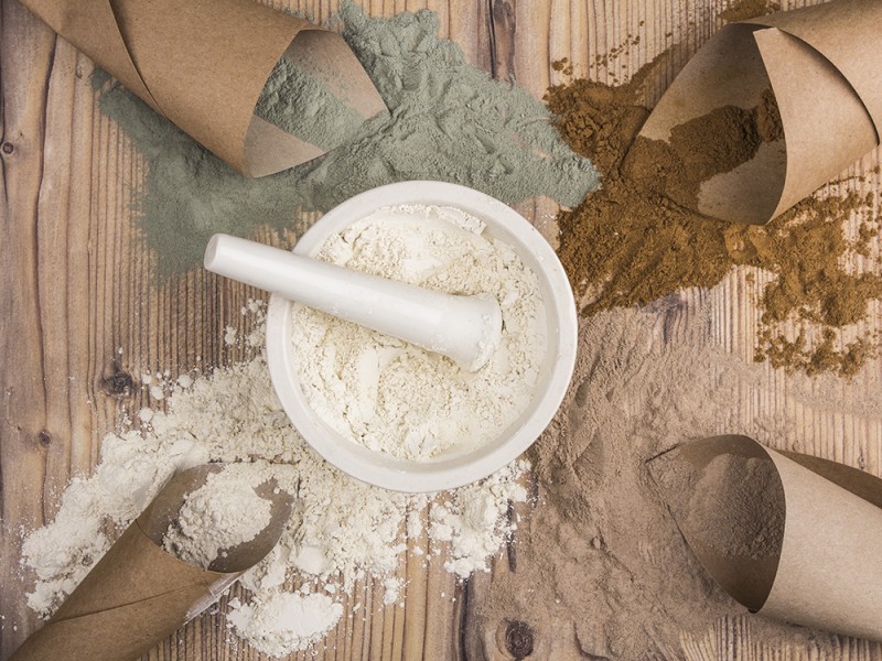 В состав белой глины входят кремнезем, цинк и магний, благодаря чему она обладает уникальной способностью высасывать из кожи все ненужное, насыщая клетки теми веществами, в которых они действительно нуждаются. Каолин, белая глина высокого сорта, эффективно поглощает загрязнения и борется с жирным блеском.