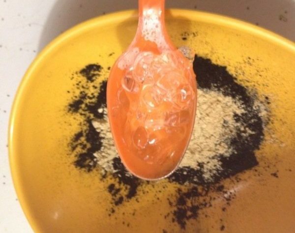 Уголь в желатине не растворяется полностью, а остается мелкими крупинками, которые впоследствии выполняют роль скраба &mdash, очищают поры и дерму.