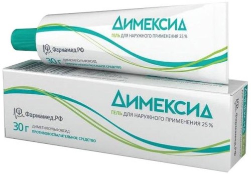 Концентрат наносят в виде компресса максимум на 30 минут. Более детальная инструкция есть тут. - Геля (содержание димексида 20% и 50%). Бесцветный или светло-желтый гель используют наружно при артрите, остеартрозе, ушибах, растяжениях, воспалительных заболеваниях кожи и акне. Наносят точечно тонким слоем. Применяют не более 14 дней. Более детальная инструкция есть тут.