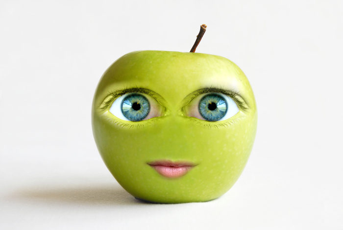 Измельчите одно кислое яблоко в пюре и выложите вкусняшку на лицо. Через четверть часа смойте водой.