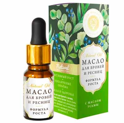 Седьмую позицию занимает средство для бровей и ресниц с маслом усьмы Формула роста от крымской мануфактуры «Дом природы». Выпускается продукт в не слишком удобной упаковке — это баночка с пипеткой. На картонной коробке указана необходимая информация, а именно состав средства. Он полностью натуральный, т.к. состоит из растительных эфирных масел и витаминов. Но самый главный ингредиент в нем — это масло усьмы. Оно содержит линолиевую кислоту, которая способна пробуждать спящие волосяные луковицы, тем самым активизируя быстрый рост волос.