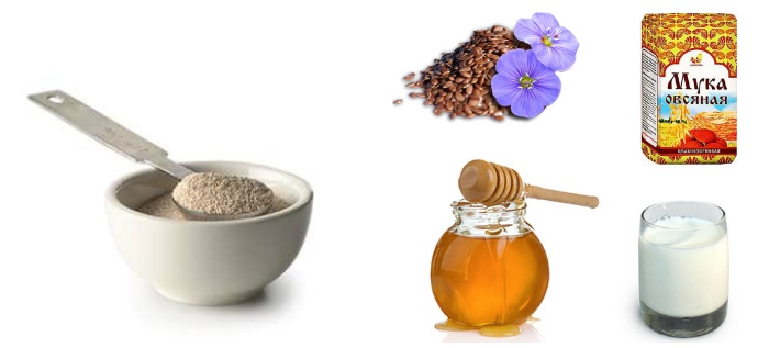 Затем влить в массу 20 мл льняного масла и всыпать немного овсяной муки. Муку добавляем, пока не будет достигнута консистенция сметаны. Наносить массу на лицо на двадцать минут.