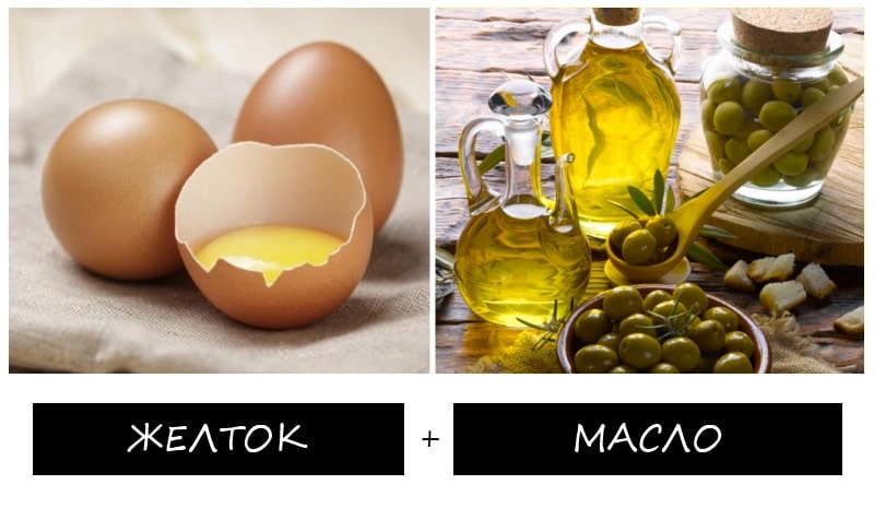 Поскольку в составе оливкового масла присутствует олеуропеина, оно проявляет увлажняющие и ускоряющие рост волос свойства. Благодаря этому оно помогает справиться с проблемой поврежденных волос. Помимо этого, оно часто используется в дополнение к другим процедурам, направленных на увлажнение волос в домашних условиях. В то же время сырые яйца богаты на жиры и белки, в следствии чего они становятся эффективным природным увлажнителем.